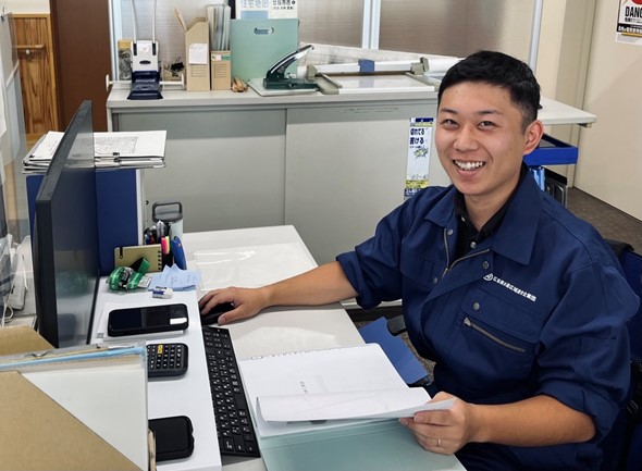 事務所の工務維持課で、水道管の更新工事や維持管理業務を行っており、主な業務内容は、管路の設計・積算・現場管理です。